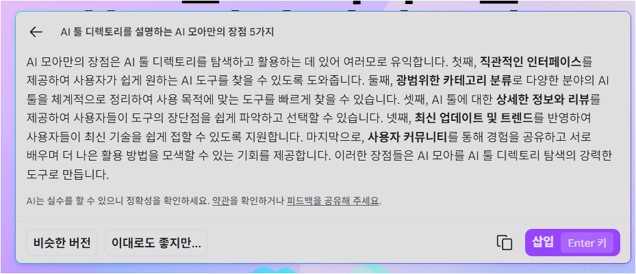 저는 AI로 초안을 만든 뒤, 문구를 고친 후 저장해 아래와 같이 AI모아의 포스터를 만들어봤습니다.